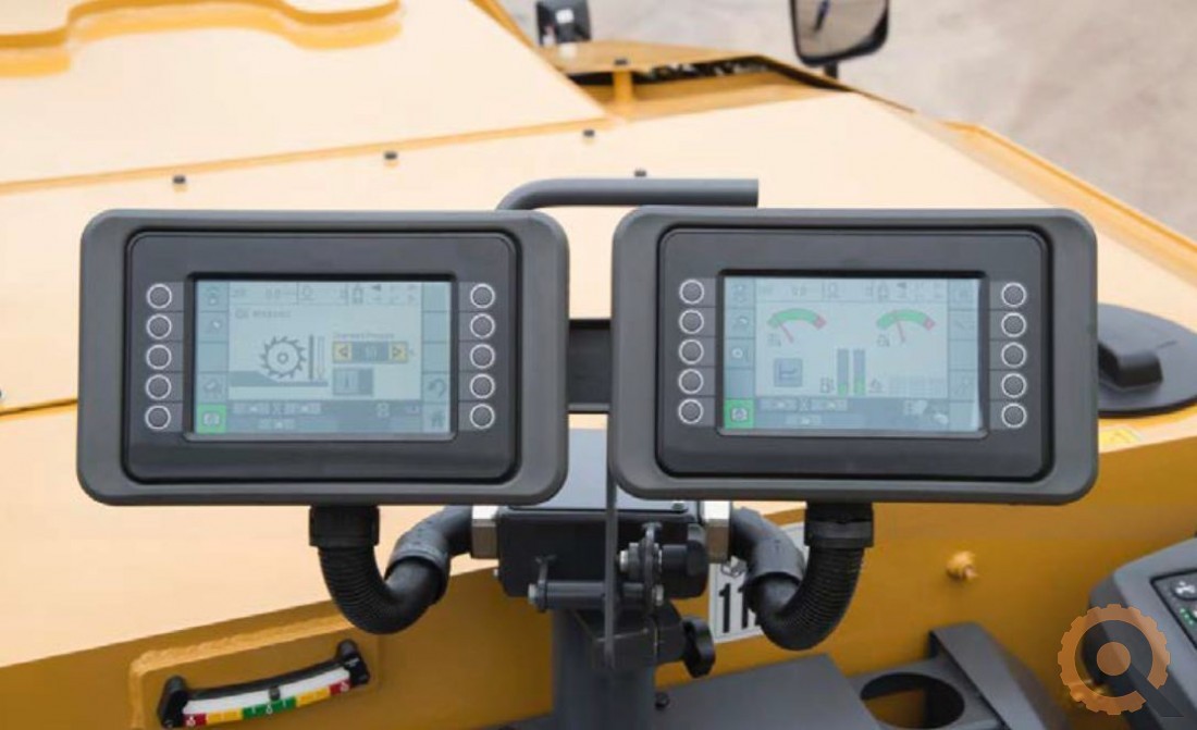 Display Touch Screen. Pannelli ergonomici che permettono all’operatore di azionare ogni commando con la massima facilità e comodità. Cruise Control: velocità di traslazione automatica. Sistema semafori segnaletici (per agevolare il carico del materiale nel camion).
