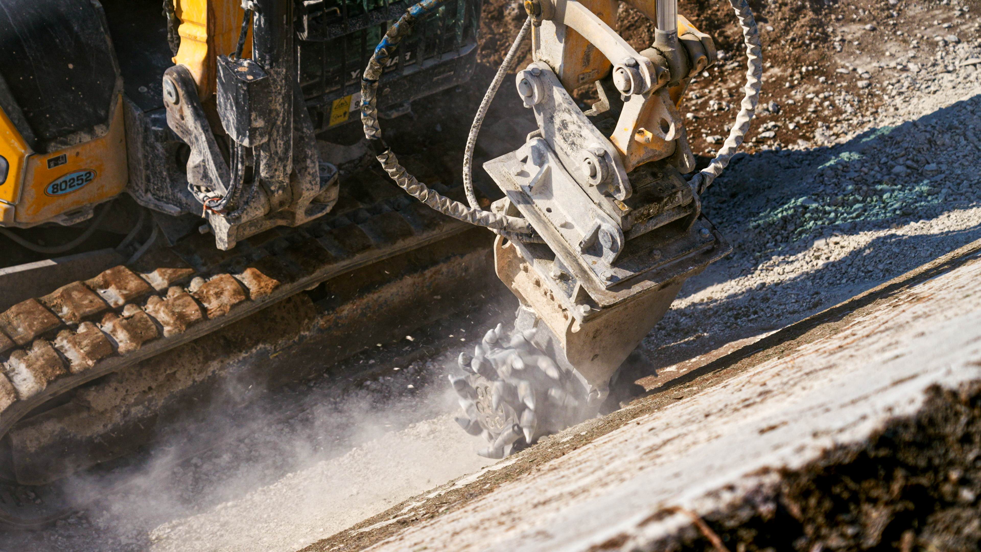 Nel dettaglio, le fresatrici Simex PLB 450 e PHD 450 e la testa fresante Simex TF 450 provenienti dalla flotta noleggio di CMI, sono state impiegate per una fase chiave dell’intervento: la scarifica del calcestruzzo ammalorato, necessaria per preparare le superfici al successivo ripristino e alla nuova gettata. Un’operazione spesso eseguita mediante martello idraulico, che però in un contesto come questo avrebbe generato demolizioni irregolari, microfratture e un’asportazione poco controllata del materiale, compromettendo la qualità del supporto.