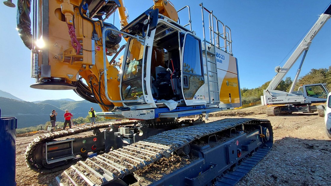 Ideata per il Giappone, dove ci sono già due modelli operativi, la perforatrice Bauer BG23V è stata implementata per le regioni europee, specialmente per quelle, come l'Italia, in cui le problematiche di trasporto sono di assoluta rilevanza. Ecco quindi che la prima BG23V giunta in Europa è al lavoro sul nostro territorio, precisamente lungo la tratta per l'alta velocità ferroviaria Salerno-Reggio Calabria, dove Fondamenta la sta utilizzando per la realizzazione di circa 400 pali trivellati senza rivestimento da 800 a 1.500 mm di diametro, per una profondità variabile tra i 25 e i 35 m.