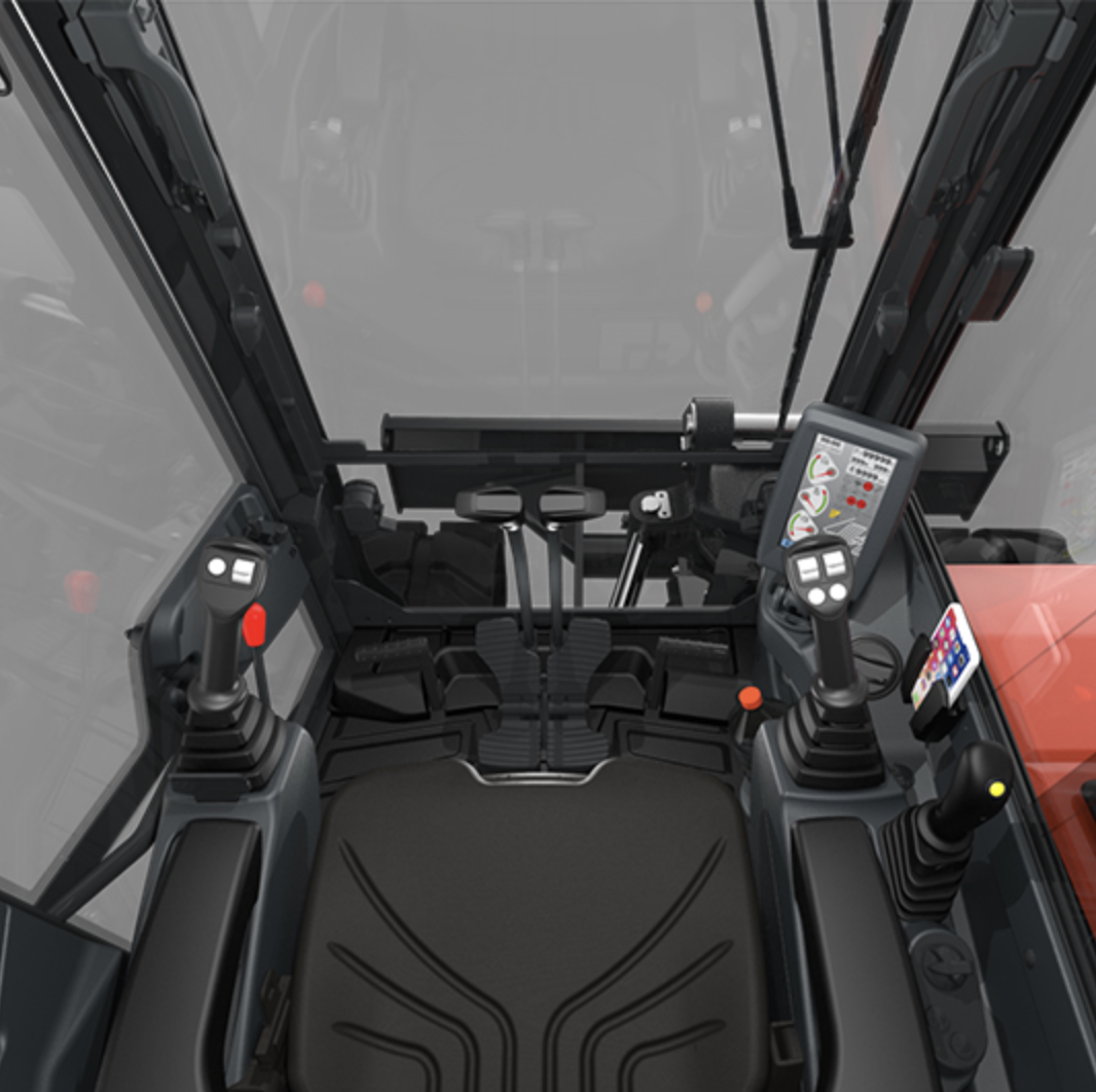 Oltre ai manipolatori servoassistiti soft touch, il sedile ammortizzato a doppia slitta completo di braccioli (con tre step di regolazione in altezza) e le leve di traslazione dotate di pedali richiudibili, i nuovi modelli del segmento 6 ton sono dotati di autoradio con vivavoce Bluetooth, vani porta oggetti e portacellulare con porta USB e altri pratici accessori. Inoltre, il display multifunzione 7″ permette all’operatore di monitorare continuamente lo stato della macchina, scegliere e personalizzare le varie configurazioni di utilizzo attraverso semplici ed intuitivi comandi.