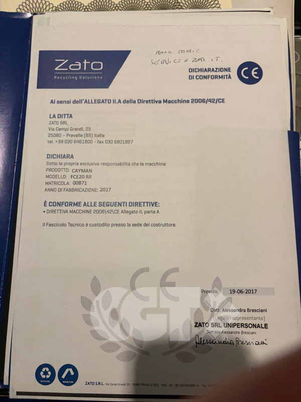 Tipologia Benna altro, Sella di attacco, Tubazioni idrauliche, Peso 2110 Kg, Marcatura CE, Certificato CE, Libretto Uso e manutenzione