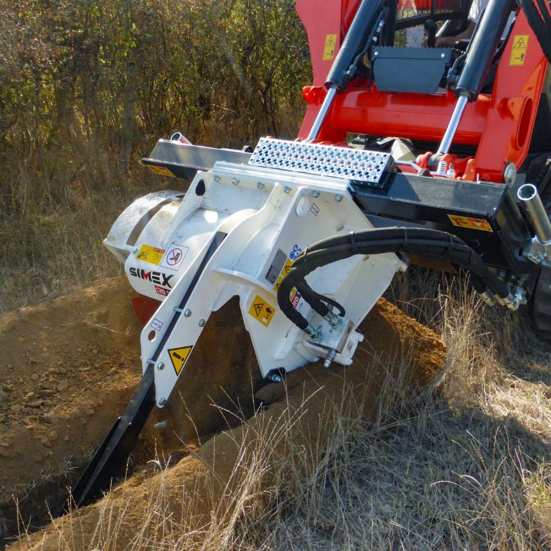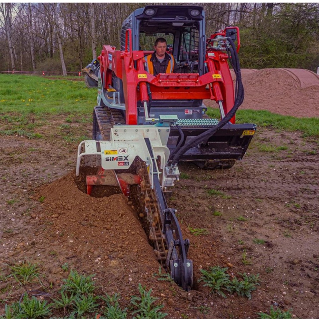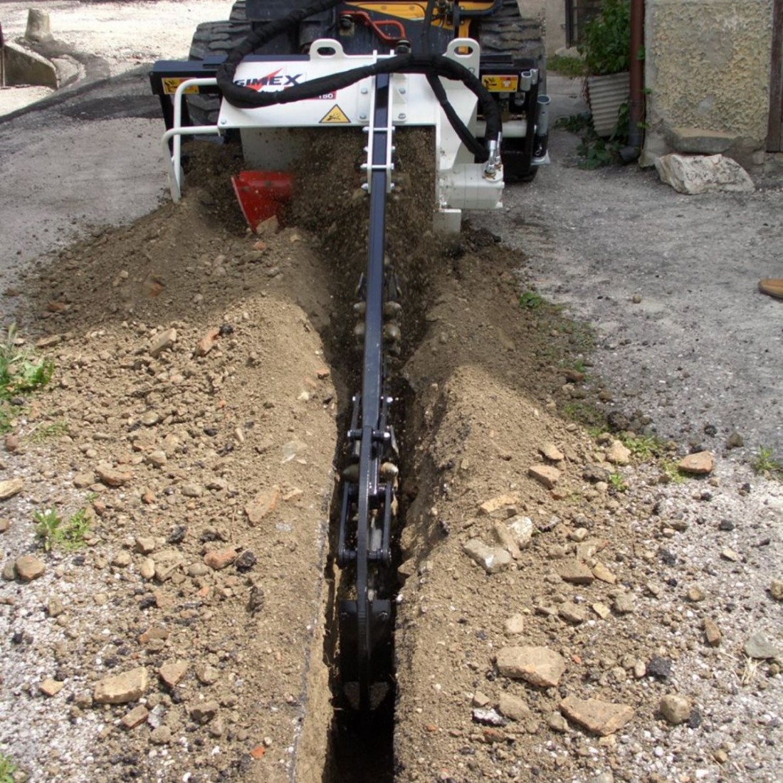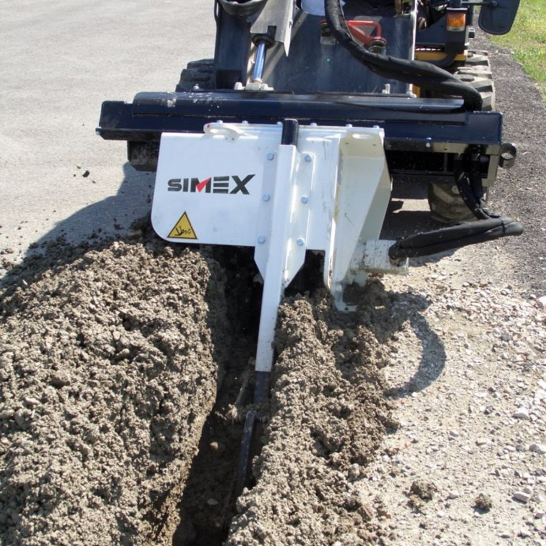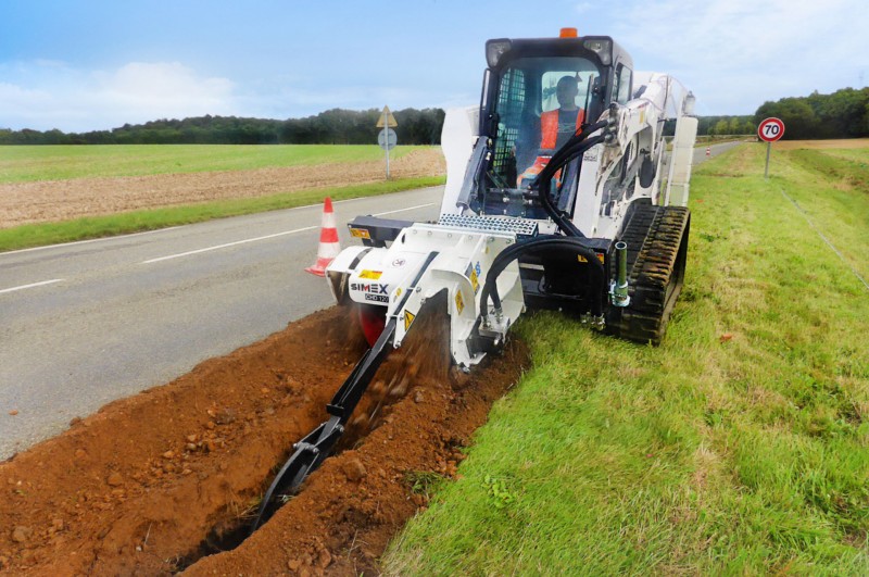 Le escavatrici a catena per minipala Simex CHD sono progettate per scavi a sezione predefinita su terreno naturale. La coclea di scarico sul lato destro e il dispositivo di svuotamento permettono di ottenere uno scavo pulito.