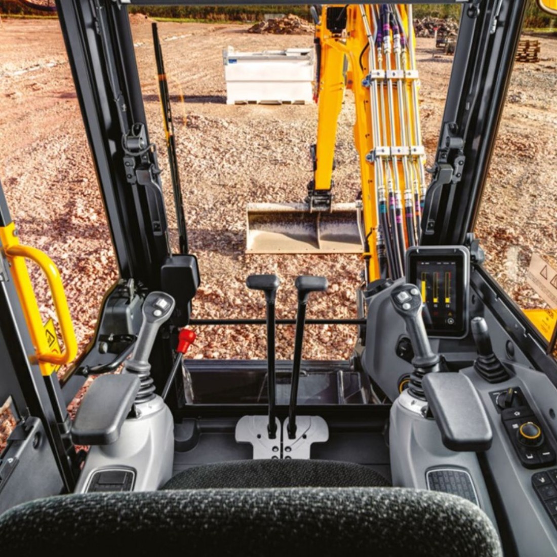 La nuova cabina del miniescavatore JCB 60C Serie 2 è spaziosa, progettata per garantire all'operatore un grande e confortevole ambiente di lavoro, con molto spazio per gambe e piedi, nuovi pedali di traslazione, minore rumorosità e vibrazioni.