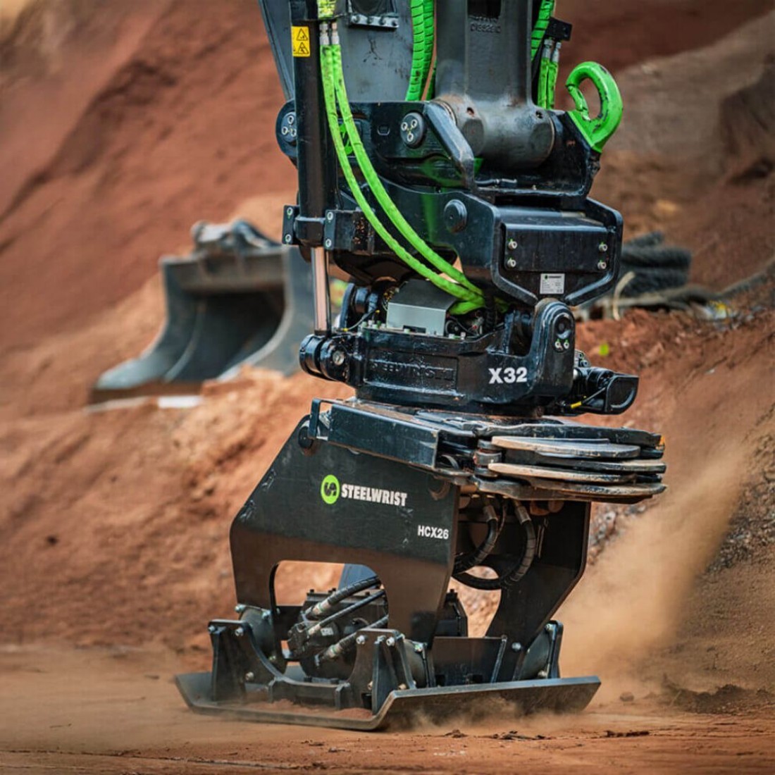 Grazie a un design idraulico innovativo, i compattatori Steelwrist funzionano in modo efficiente anche con flussi idraulici ridotti, risultando perfettamente compatibili con i tiltrotator. Questa caratteristica permette di utilizzare il compattatore direttamente sotto il tiltrotator, garantendo massima flessibilità e precisione nelle operazioni di compattazione. Il compattatore idraulico Steelwrist è ideale per numerose applicazioni, tra cui costruzione di strade, lavori di fondazione, riempimento di trincee e compattazione di discariche. L’operatore può passare rapidamente dallo scavo alla compattazione utilizzando la stessa macchina, migliorando efficienza, produttività e sicurezza in cantiere.